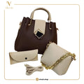 Elegant Brown & Beige Handbag Set for Women | 3-Piece Structured Tote