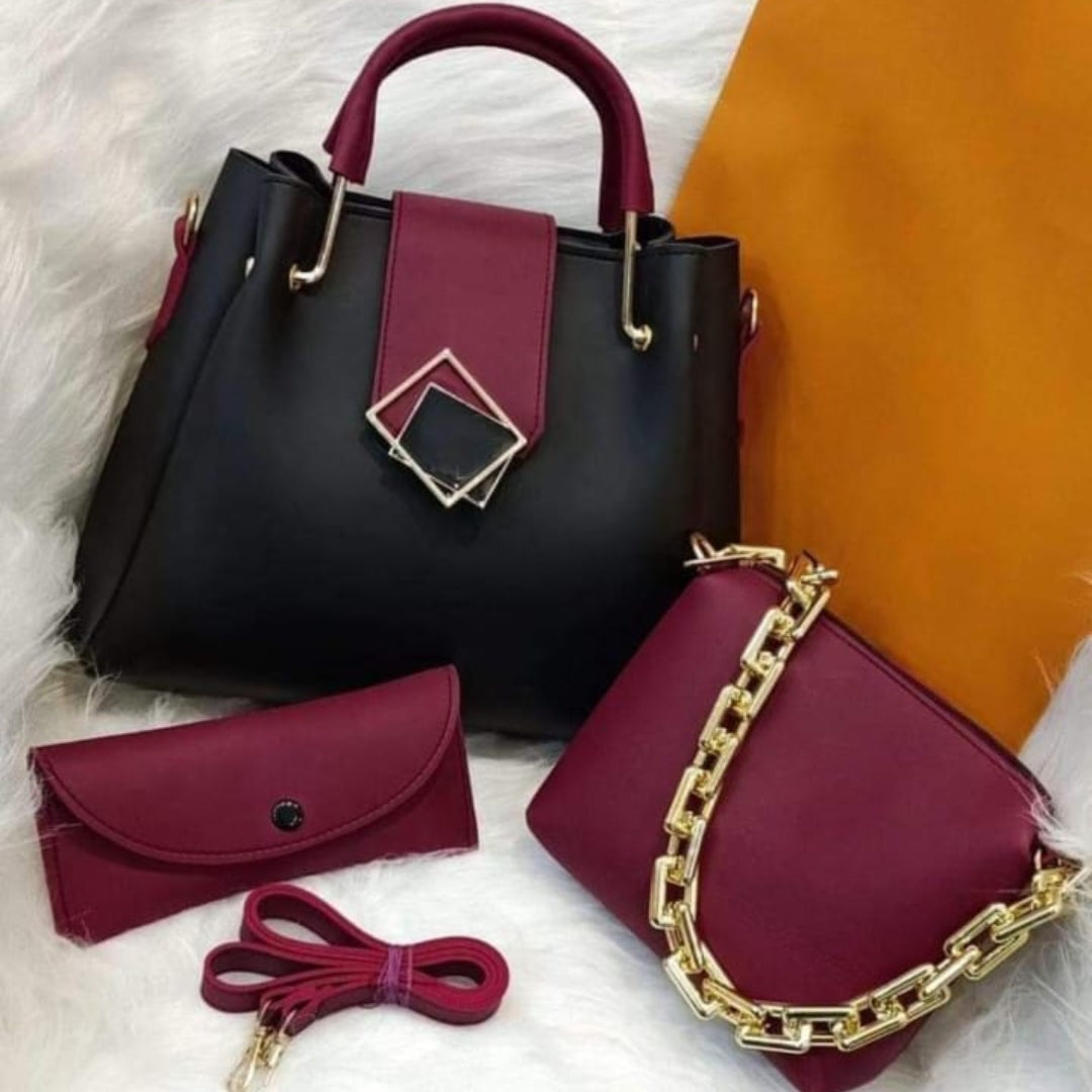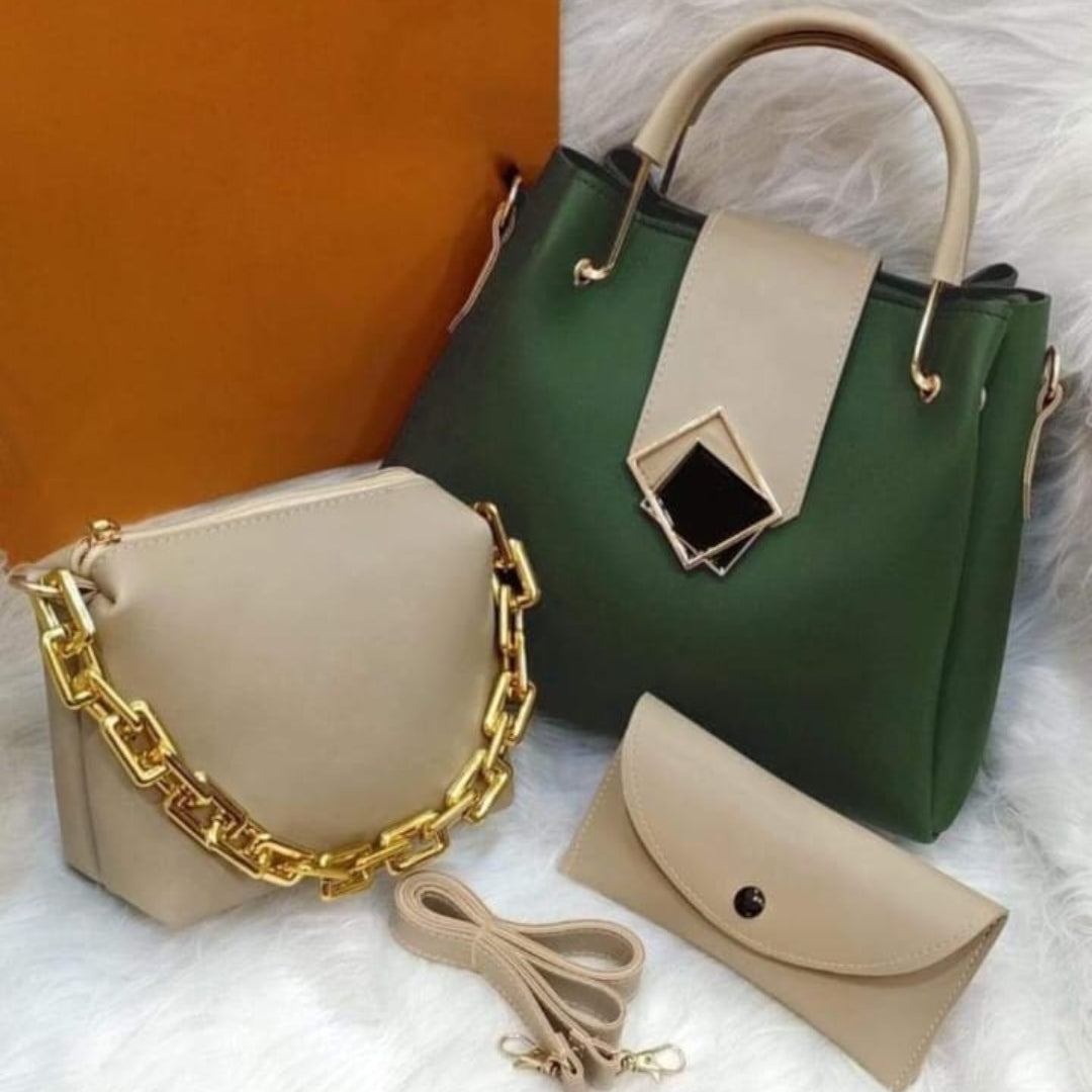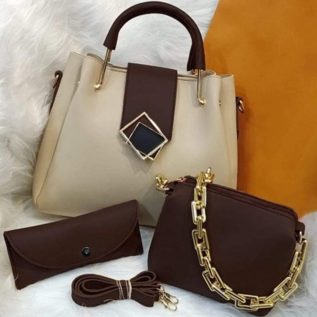 This handbag set blends classic elegance with modern versatility. The rich brown tote, chic beige accents, and coordinated accessories make it a complete style solution — polished, practical, and effortlessly fashionable.