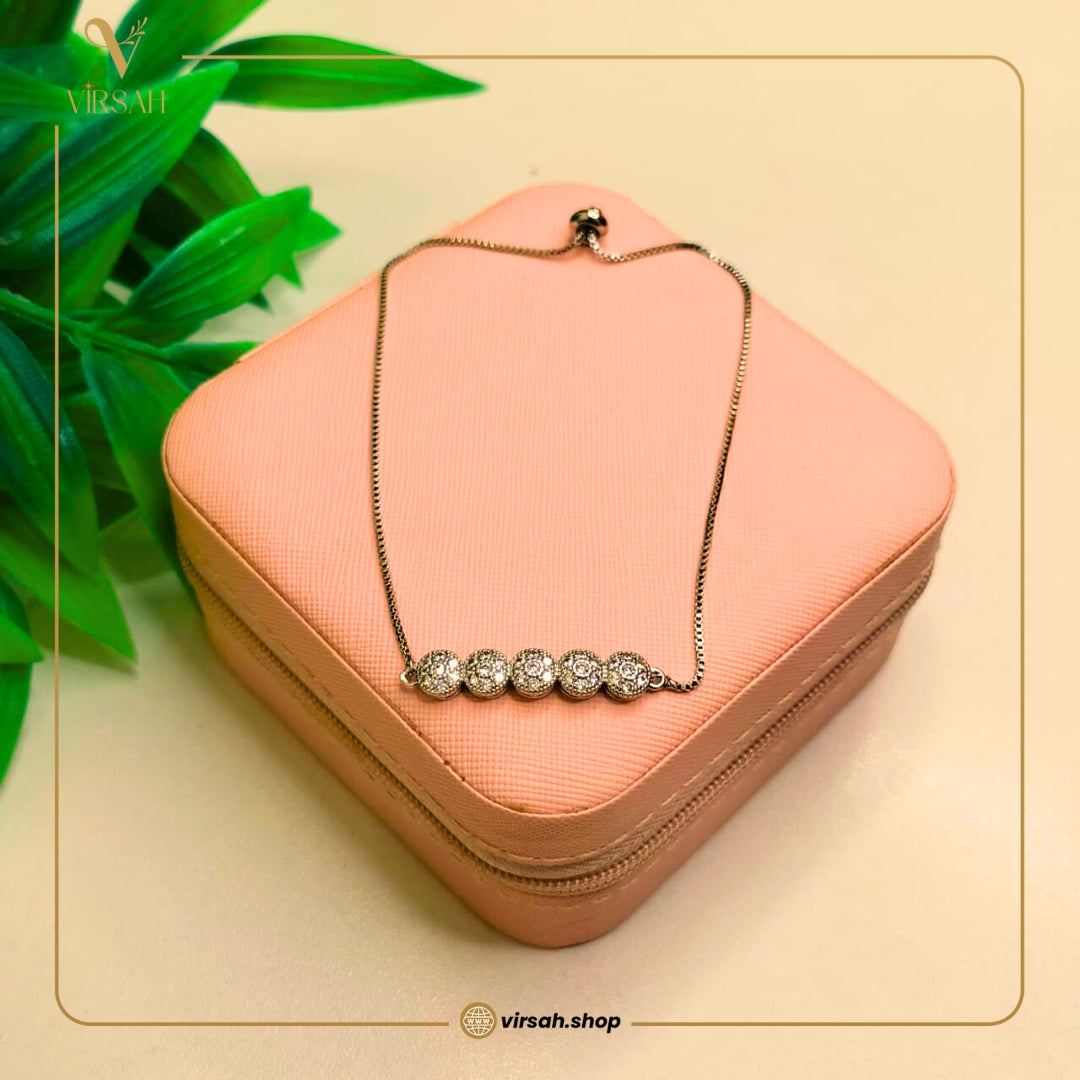 Elegant Five-Crystal Disc Silver-Plated Necklace | Artificial Jewelry for Women