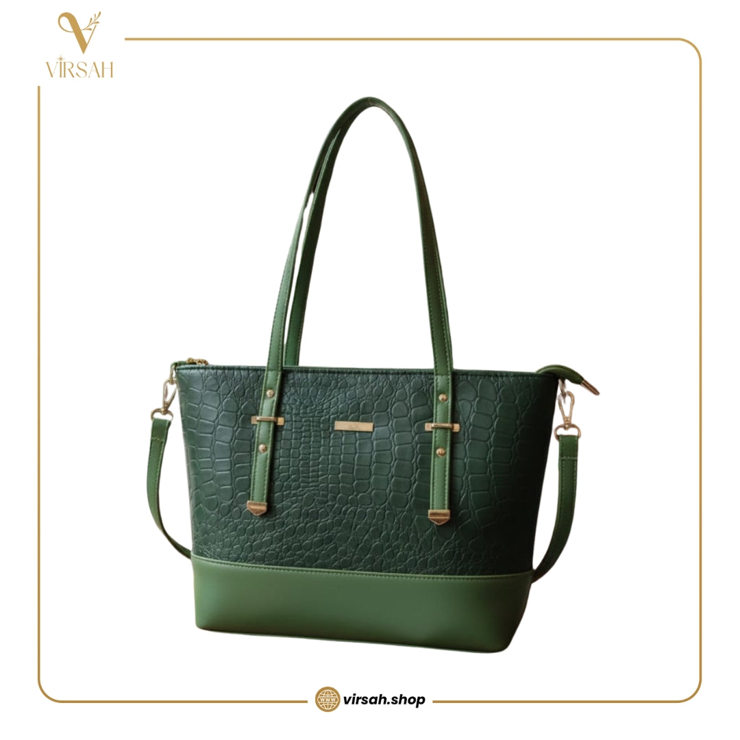 Elegant Green Croc-Texture Tote Bag | Premium Shoulder & Handbag for Women