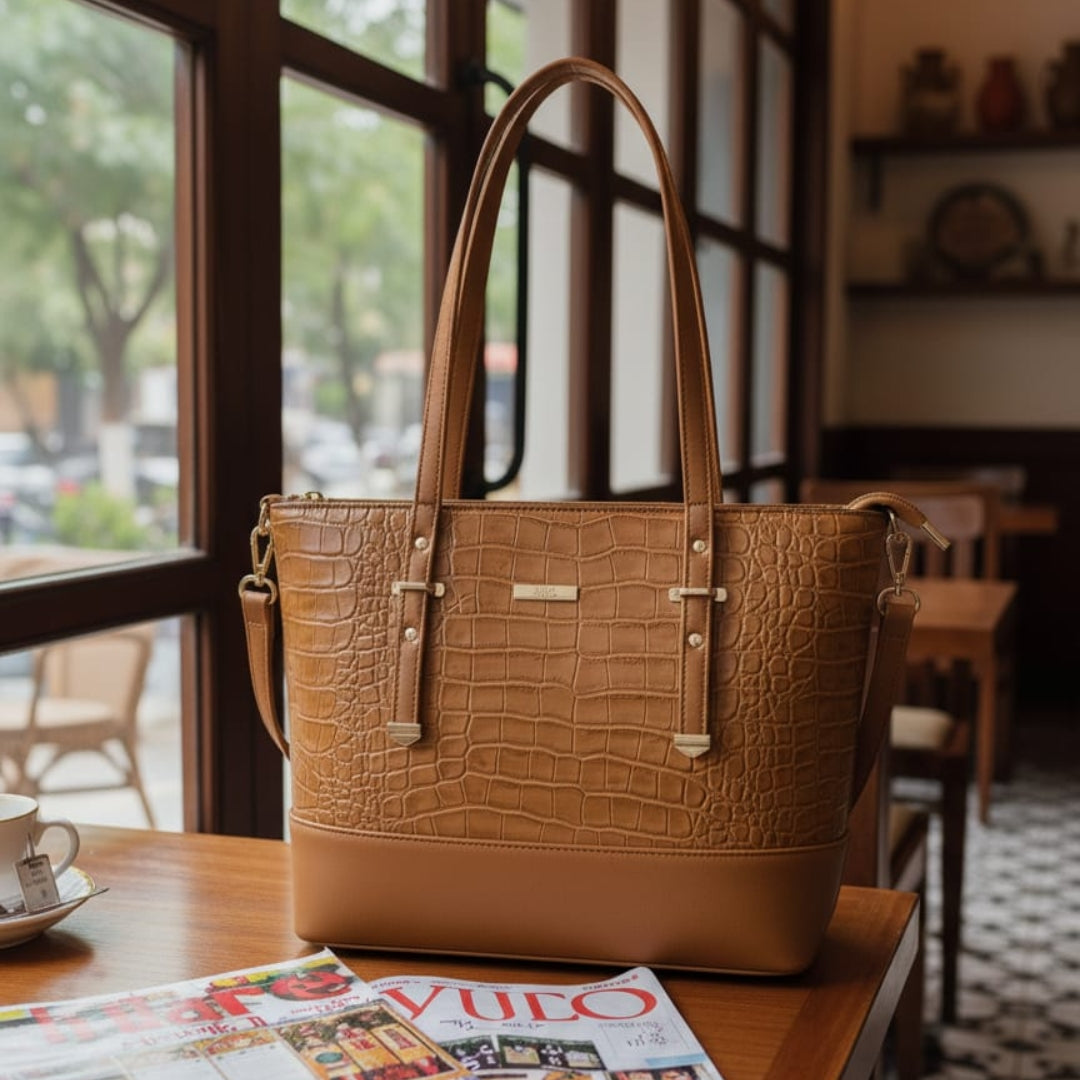 This tote bag offers a perfect balance of style, space, and practicality. The green croc-texture finish adds a bold, classy touch, while its structured build and roomy interior make it ideal for everyday essentials — without compromising on elegance.