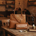 - 3-piece coordinated set: Structured handbag, crossbody pouch, and clutch wallet