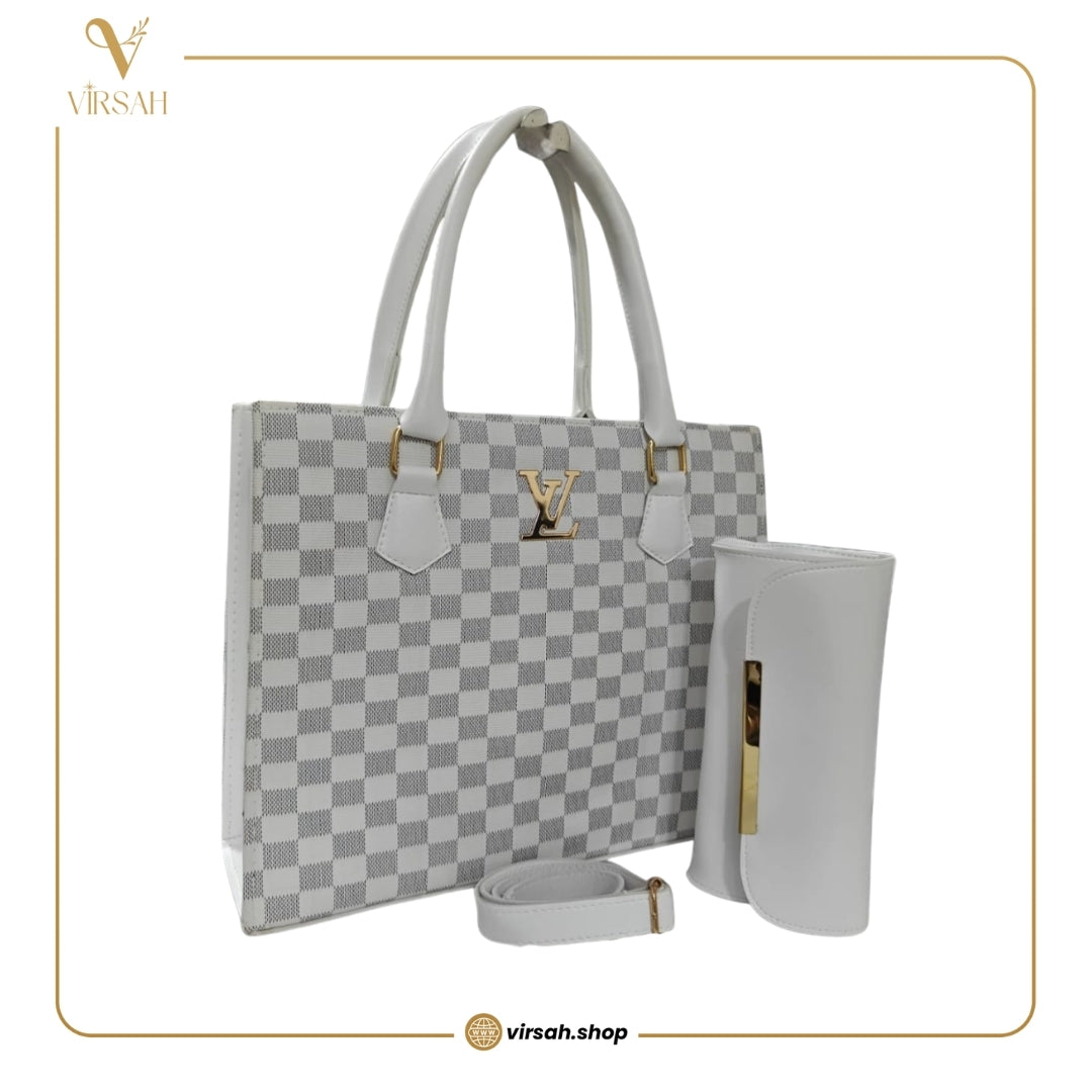 Elegant White Checkered Luxury Tote Handbag Set for Women