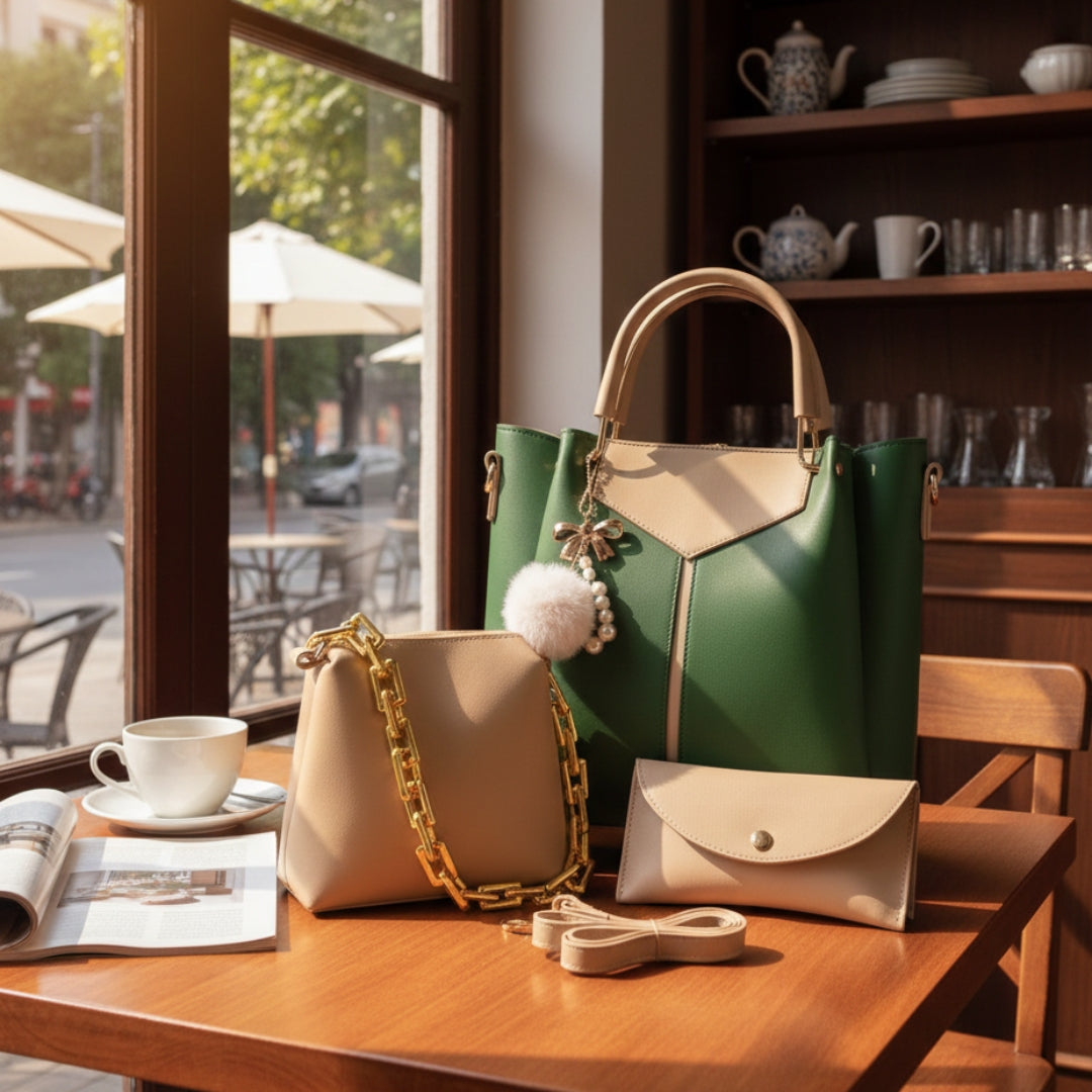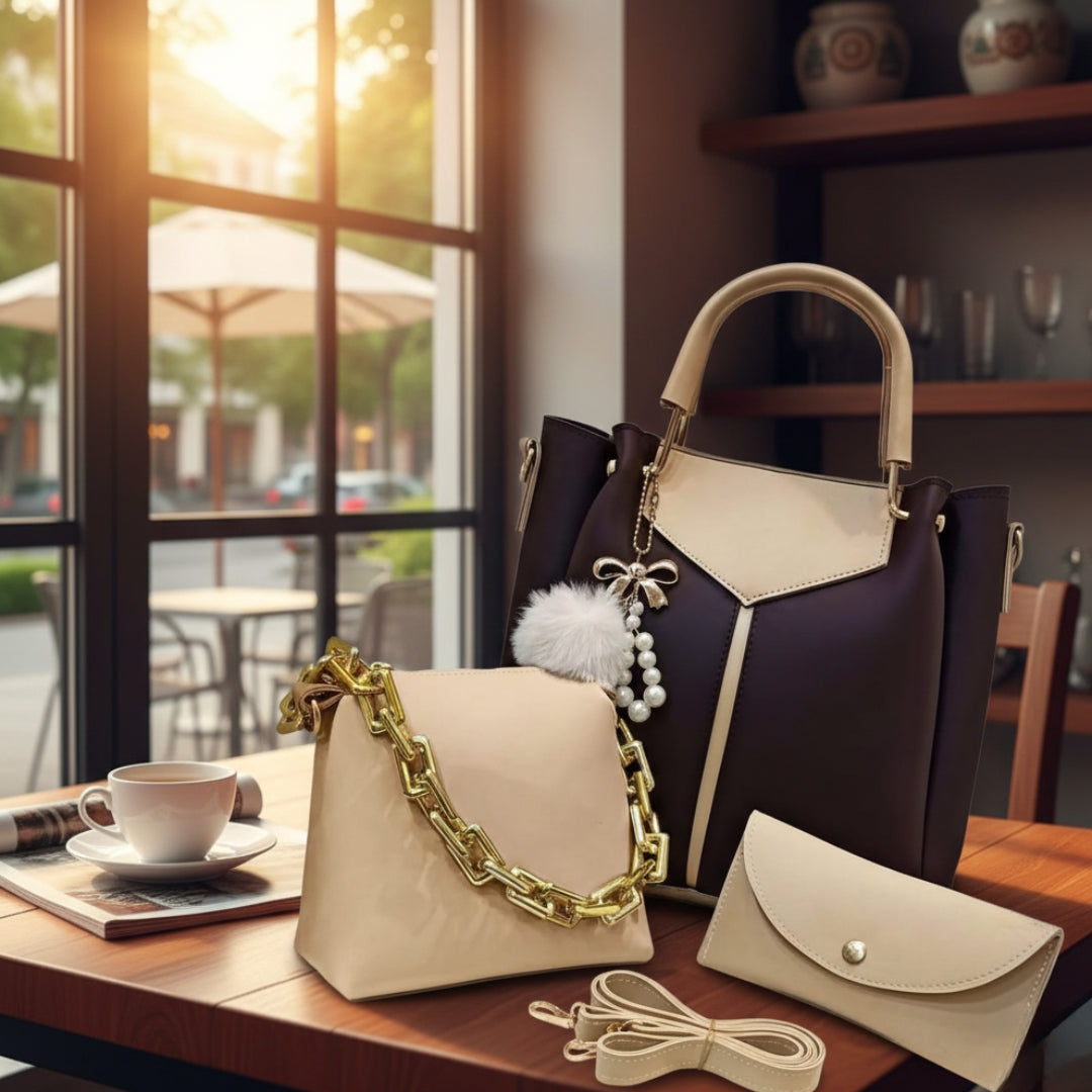 ✔ 3-piece coordinated handbag set