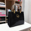 Experience refined elegance with this premium structured handbag featuring an exquisite crocodile-inspired texture. Designed to make a statement, it showcases a bold embossed pattern paired with a polished metallic emblem on the front for an upscale, designer-inspired finish.