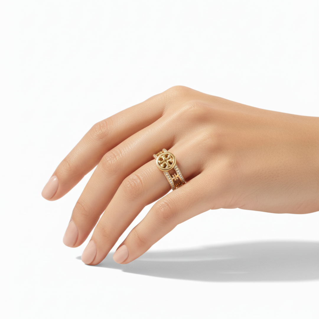 Make a bold yet elegant statement with this premium medallion-inspired ring, designed for those who appreciate refined craftsmanship and timeless style. Featuring a detailed cut-out band and a striking circular centerpiece, this ring blends modern fashion with classic elegance.