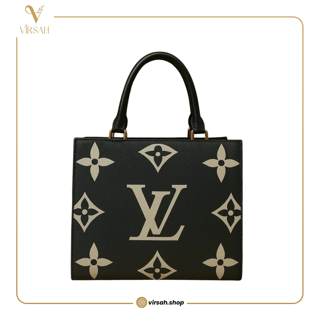 ✔ 1 × Designer-Inspired Monogram Handbag (Black & Beige)