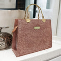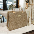 Featuring gold metal handles, durable construction, and a spacious interior, this handbag is a perfect balance of fashion and practicality.