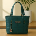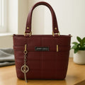 The bag features dual comfortable handles, a polished front metal plaque, and a stylish hanging charm that enhances its luxury look. With its spacious interior and durable PU leather build, it’s perfect for office, daily use, outings, travel, and special occasions.