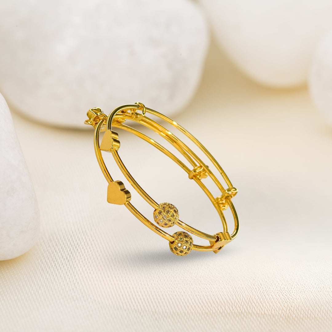 Add elegance, charm, and modern style to your accessories collection with our Triple Heart Gold-Plated Artificial Bracelet. Designed to stand out with its clean heart motifs and sparkling side beads, this bracelet blends simplicity with a luxurious fashion-jewelry look.