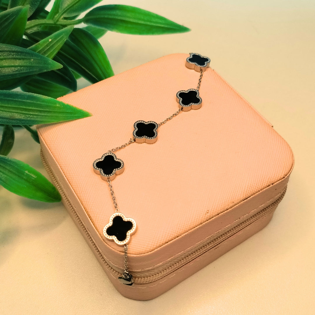 Virsah Black Clover Bracelet – Premium Silver-Plated Elegant Women’s Bracelet