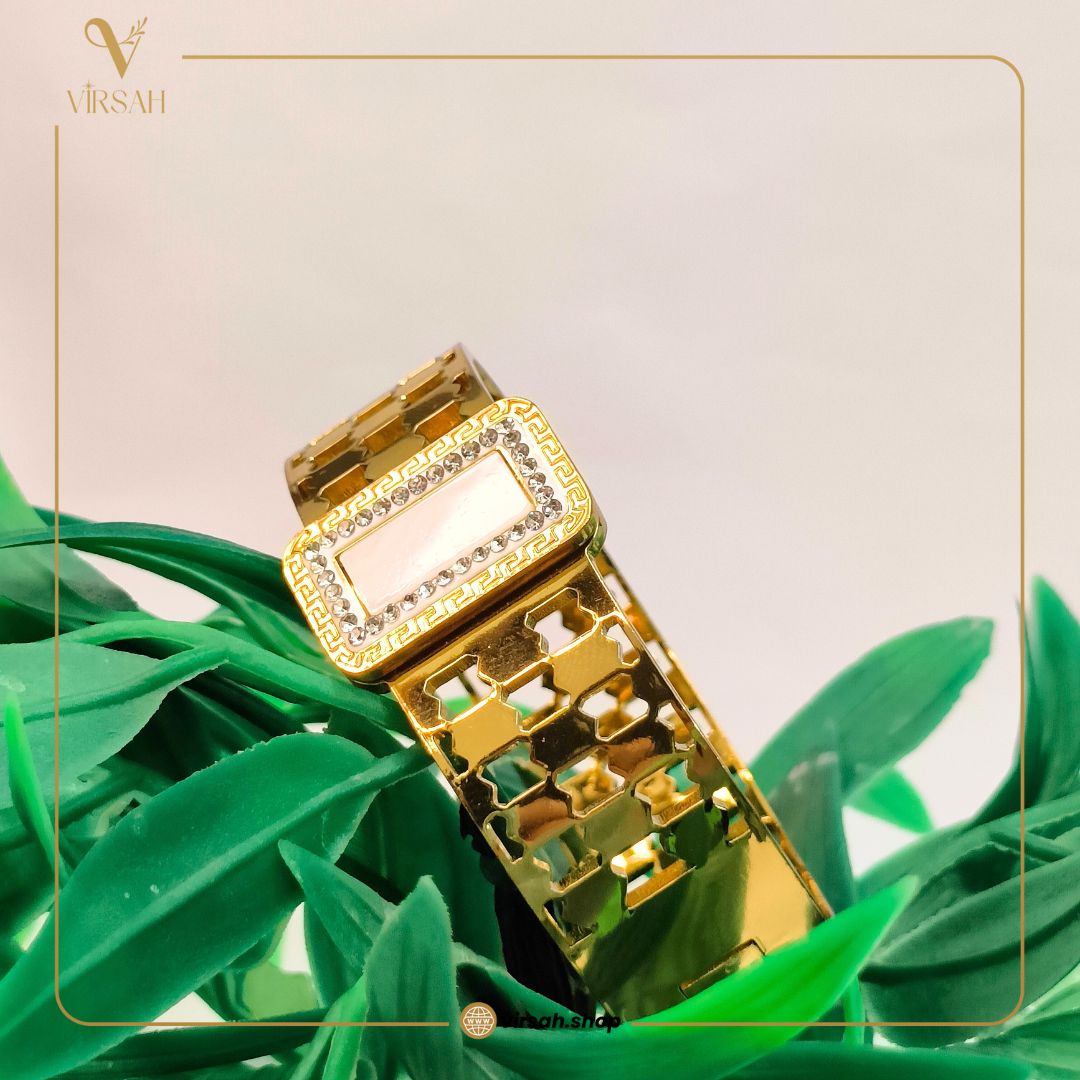 Elevate your style with the Virsah Premium Gold-Finish Rectangle Dial Bracelet, designed to bring luxury, elegance, and modern fashion into one stunning accessory. This bracelet features a watch-style rectangular face design framed with sparkling crystals, giving it a rich and glamorous appearance — without being a real watch.