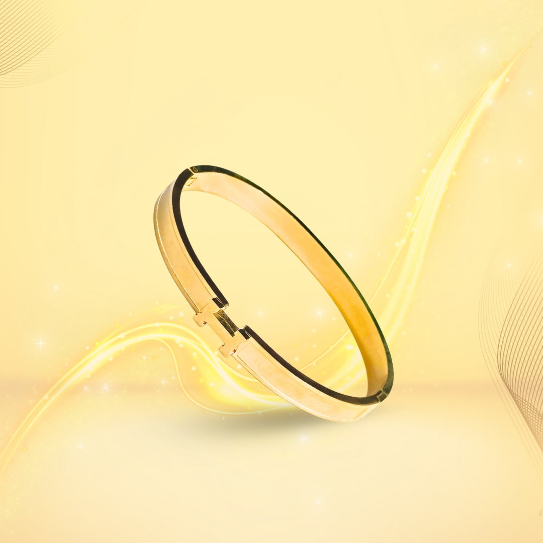 Shine with elegance and confidence! This Virsah gold-tone “H” bangle adds luxury charm to your look — beautifully crafted, affordable, and timeless.