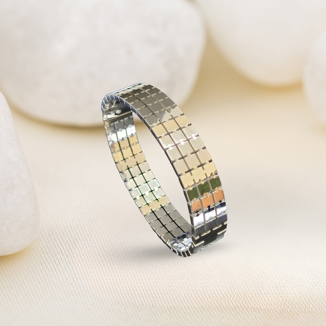Virsah Silver-Tone Grid Pattern Bracelet | Premium Artificial Jewelry for Men & Women