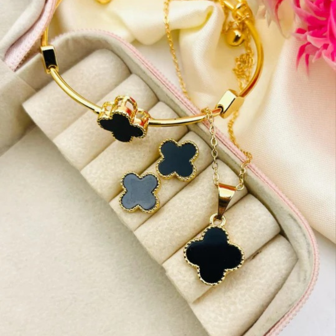 China Gold-Plated Locket Jewelry Set – Necklace, Earrings & Bangle (3 Pcs)