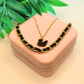 Dual Layer Gold Chain Necklace Set with Black Swan Pendant