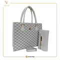 Elegant White Checkered Luxury Tote Handbag Set for Women