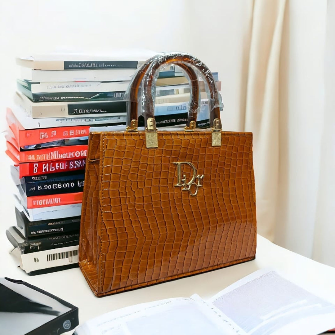 Experience refined elegance with this premium structured handbag featuring an exquisite crocodile-inspired texture. Designed to make a statement, it showcases a bold embossed pattern paired with a polished metallic emblem on the front for an upscale, designer-inspired finish.