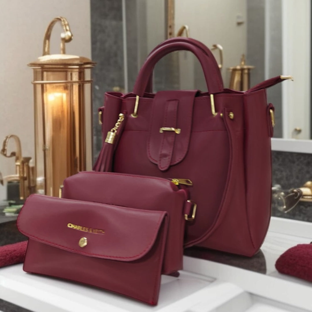 This set includes a main handbag, a sleek clutch, and a matching pouch—perfect for everyday use, outings, office, university, or gifting.